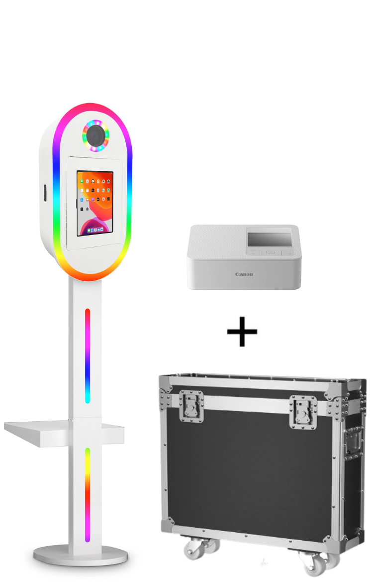 Son design élégant et moderne permet à notre photobooth Aura de s’intègrer parfaitement à tous les environnements — mariages, fêtes privées, anniversaires ou événements professionnels.