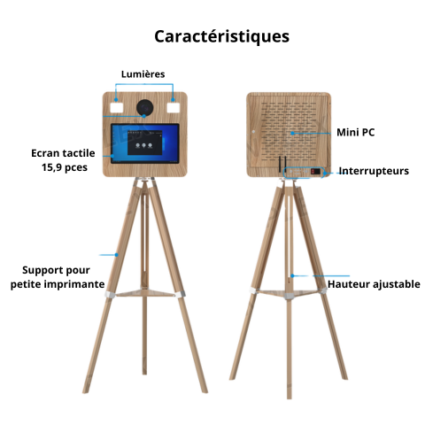 Faites la différence lors de vos événements avec Woody, le photobooth au design bois élégant et chaleureux. Facile à installer et à transporter et doté de pieds permettant d'ajuster la hauteur, il s’adapte aussi bien aux mariages, anniversaires, soirées privées qu’aux événements d’entreprise.